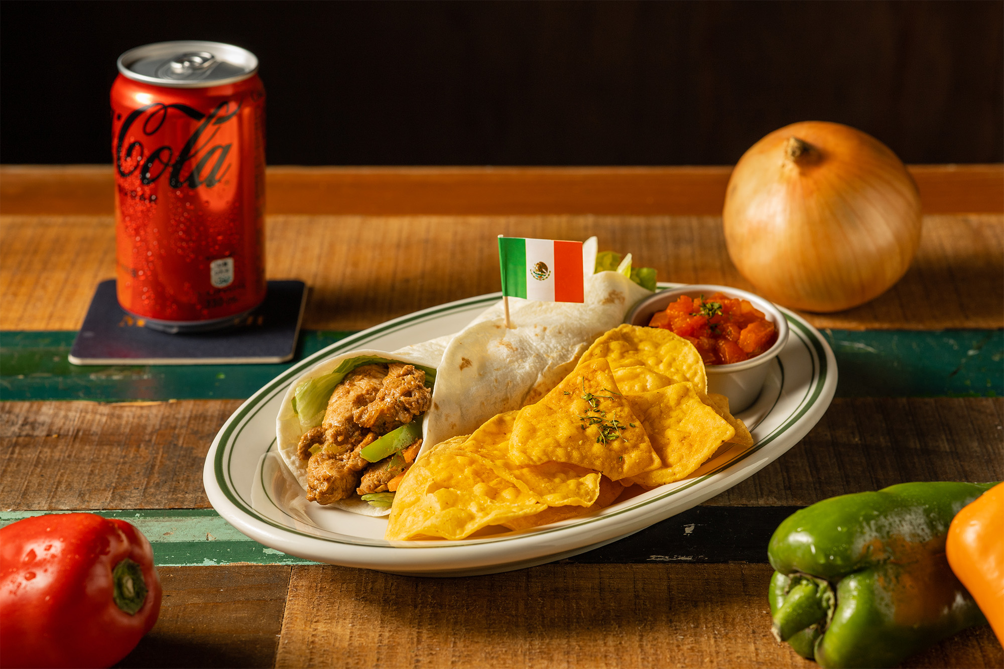 道具搭配餐點內的原型食材,呈現墨西哥料理的風味。